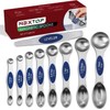 Magnetic Measuring Spoons Set of 9 Stainless Steel Dual-Sided Stackable Measuring Spoon Nesting Teaspoons Measuring Dry and Liquid Ingredients, Fits in Spice Jars Set of 9 (Sapphire)