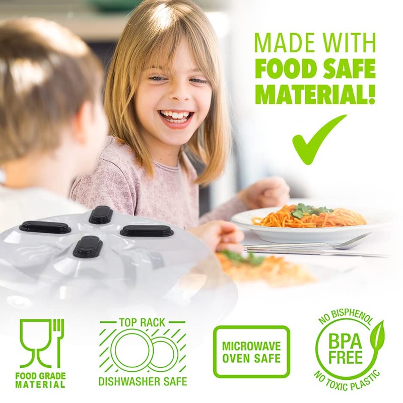 - KEEPS MICROWAVE CLEAN - Prevents splatter during microwave cooking and conveniently stows on the inside ceiling when not in use, ready when you need it! Easy grip handles make for easy use and steam vents allow moisture to escape.