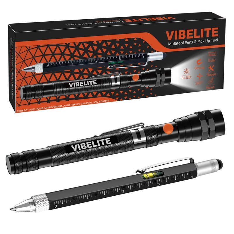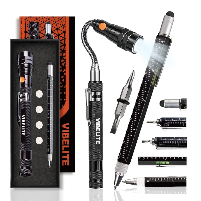 VIBELITE Gifts for Dad, Magnetic Pickup Tool and 6 in 1 Multitool Pen with Touch Screen Stylus, Rulers, Bubble Level, Flathead, Phillips Screwdriver, Ballpoint Pen, Gifts for Men, 2 Pack