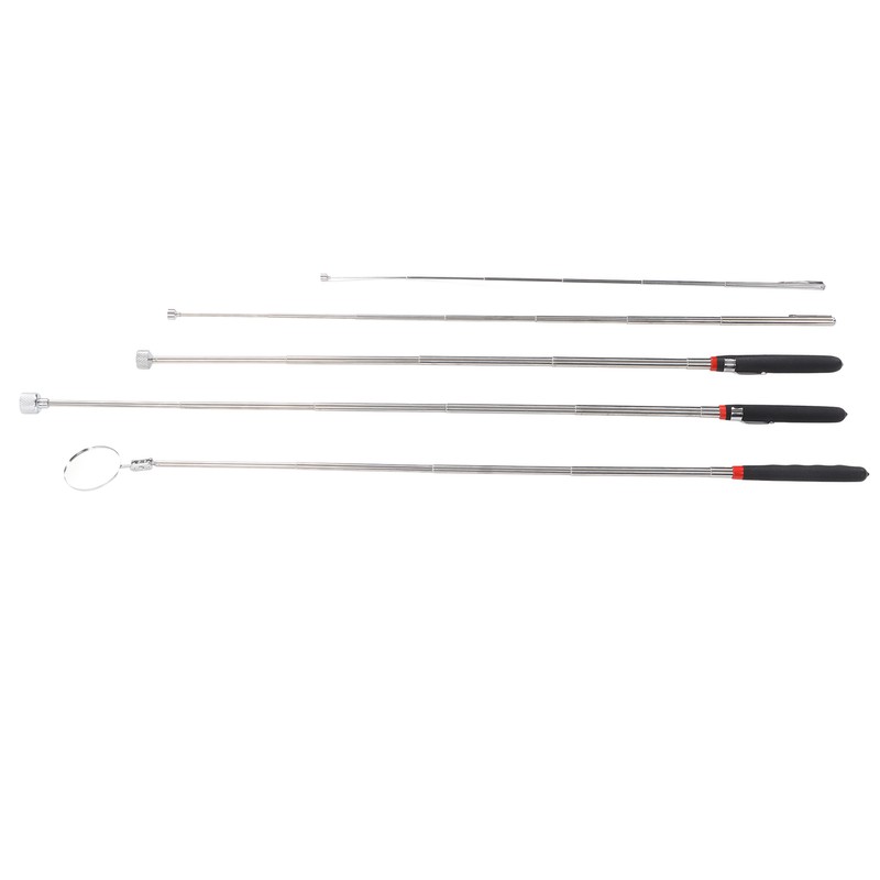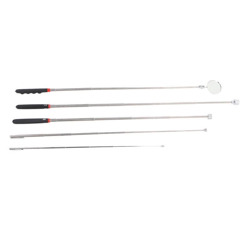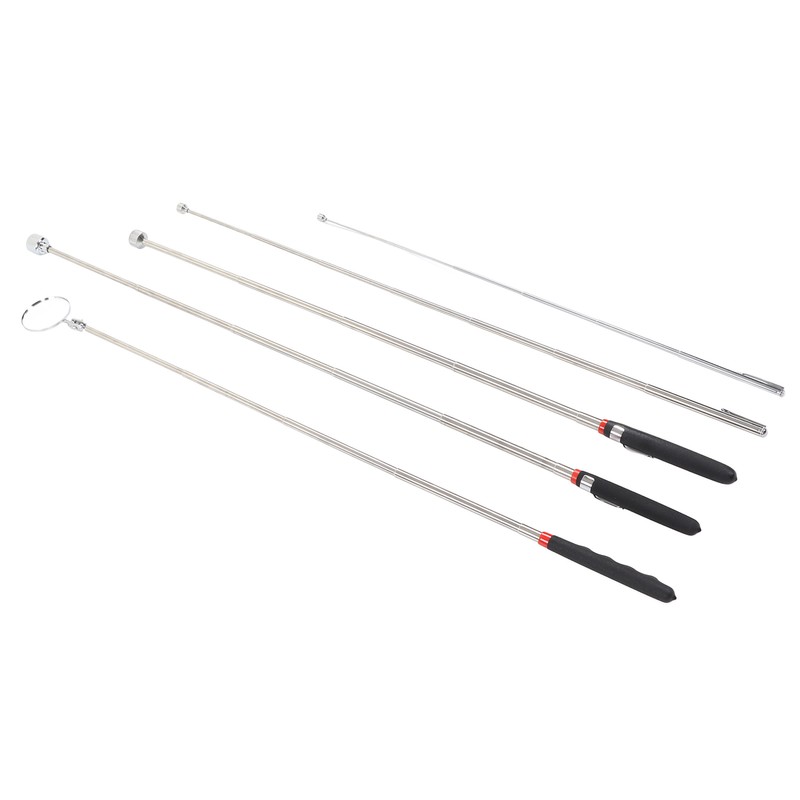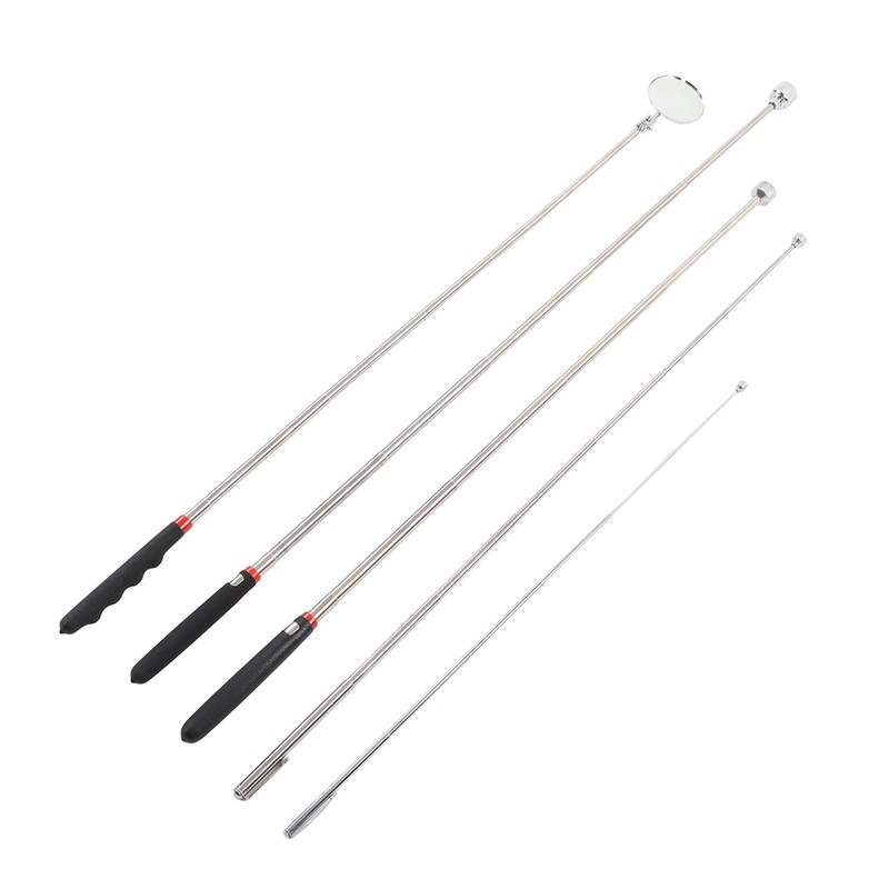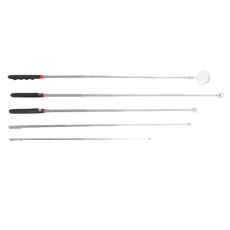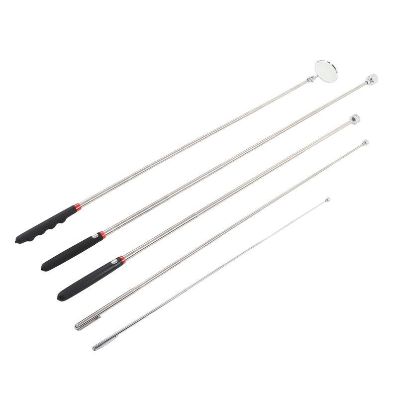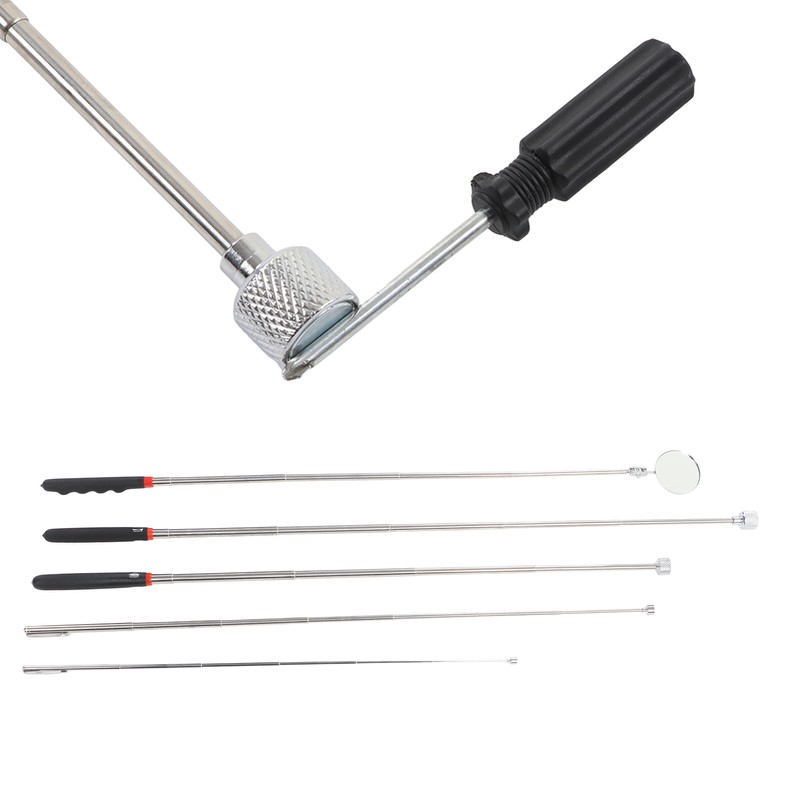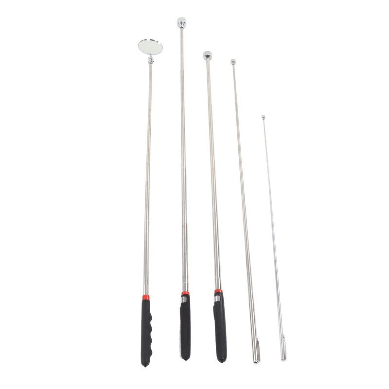 1、STRONG SUCTION: Magnetic pickup tool kit, with adjustable length, can easily adsorb various metal parts, and the maximum suction is 15lb, so there is no need to worry about things falling during the adsorption process. 2、MULTIPLE USAGES: The tool kit can be used to retrieve dropped jewelry, car keys, toys, sewing needles, metal fasteners, etc., with strong suction, which is suitable for narrow areas, and is convenient and practical. 3、EASY OPERATION: Ergonomically designed, these magnetic telescopic rods are comfortable to hold, easy to adjust the length according to needs, suitable for long term operation, efficient and labor saving. 4、ROUND MIRROR: Equipped with telescopic rod with a round inspection mirror, it can clearly display the corners that are difficult to detect, quickly pick up the dropped items, which is simple and convenient. 5、DURABLE MATERIAL: These tools are made of steel and rubber, with excellent magnets, they have high hardness, corrosion resistance and wear resistance, and can be used in various environments.