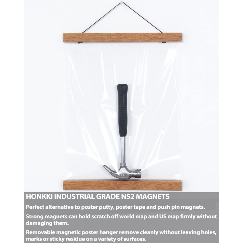 - DAMAGE-FREE HANGING. Perfect alternative to poster putty, poster tape, and push pin magnets. Magnetic poster hanger can be removed cleanly without leaving holes, marks, or sticky residue on a variety of surfaces. You can use it to hang your scratch off world map poster, US map, or travel map.