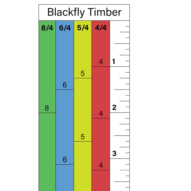 • Scale displays 4/4, 5/4, 6/4, 8/4"(1", 1.25", 1.5", 2") as well as a normal ruler that goes to 30". The quick cut section allows for a 1/8" kerf (standard Woodmizer, Ripper 37 blade etc) plus a slight allowance for teeth out of set, blade vibration)