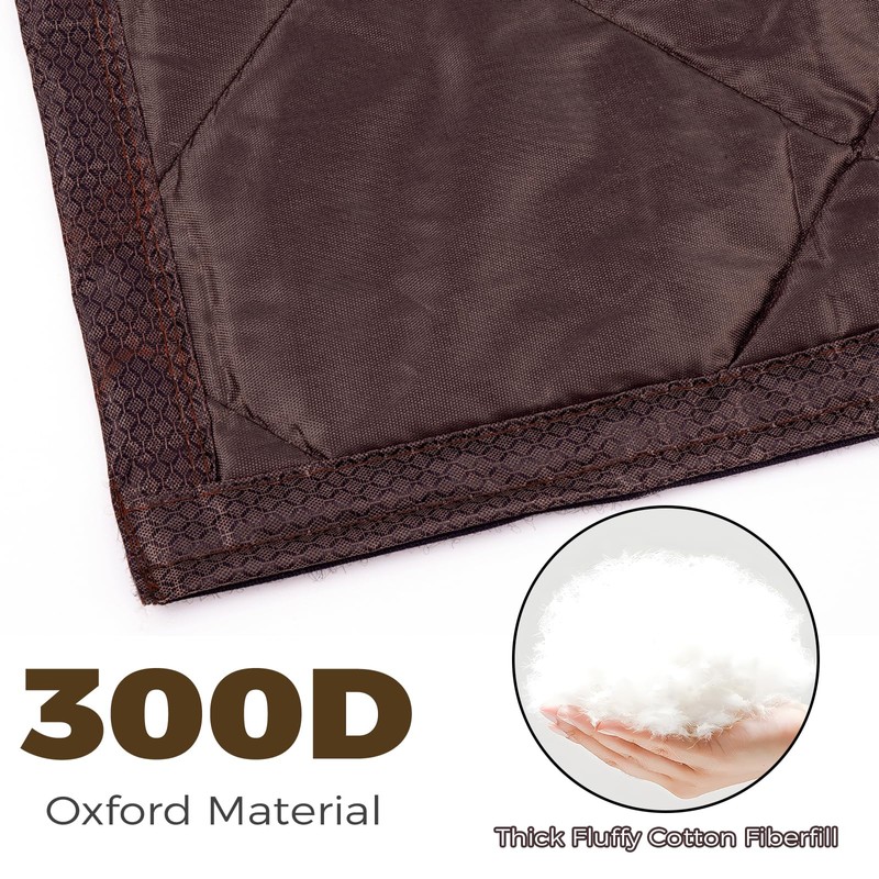 - PREMIUM QUALITY:Top and bottom are made of sturdy, waterproof upgraded oxford fabric. A layer of soft, fluffy cotton padding is sandwiched in the center to ensure excellent heat insulation, heat preservation, light blocking, waterproof, windproof and dustproof
