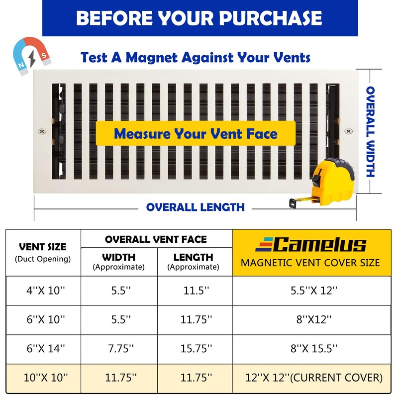 - 【High Quality After-Sales Service】The CAMELUS team is committed to providing you with the highest quality magnetic products and exceptional customer service. If you're not completely satisfied with our magnetic ceiling vent covers, please contact us, and we'll do our best to meet your needs.