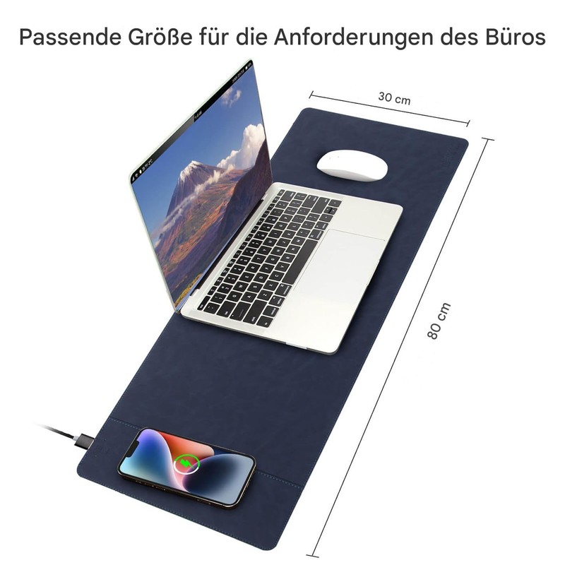Magnetic Wireless Desk Mat, 15 W Fast Charging Mouse Mat, 80 x 30 cm, Microfibre Leather Waterproof Desk Mat for Office, Home, Laptops, Notebooks Accessories