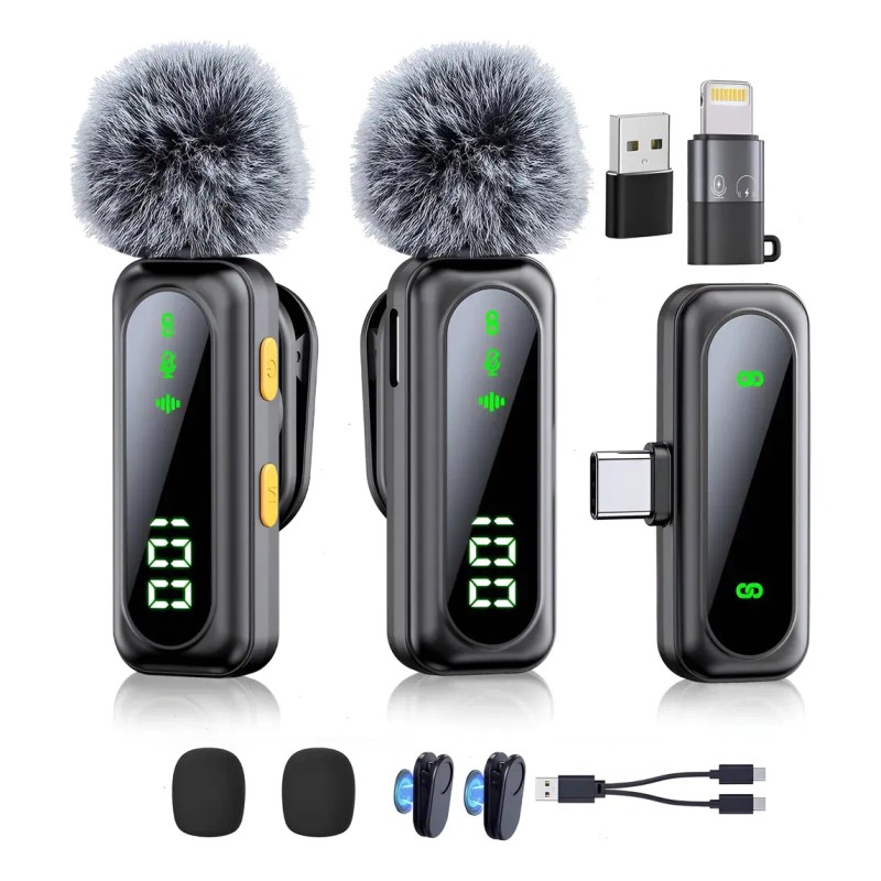 Magnética micrófono inalámbrico lavalier Aitafy for iphone android pc ipad micrófonos pantalla digital cancelación de ruido reverberación batería de gran capacidad largo alcance profesional J2