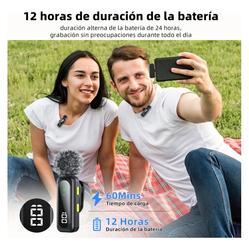 - Tiempo de carga: 1 hora; un solo micrófono puede usarse de forma continua durante 12 horas.
