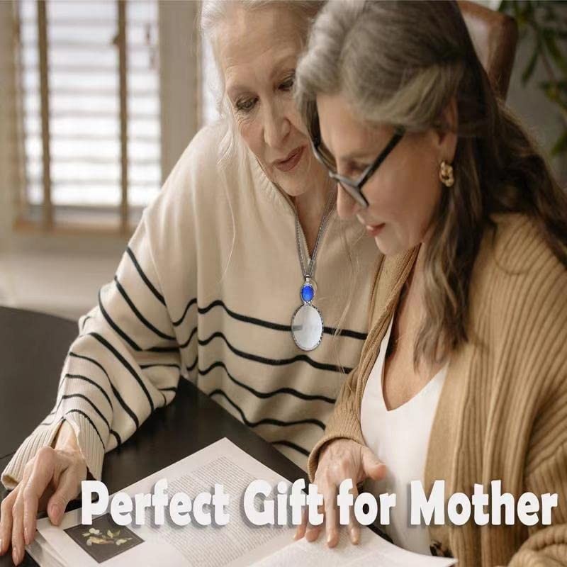 - This magnifying glass necklace is an ideal and pratical visual aid for seniors, it is a excellent magnifying necklace for watching small print on coupons, prescriptions, sewing, and book reading. This loupe necklace can help the senior make every day tasks easier. And this monocle magnifier chain was popular between gentleman and butler in the 19th Century upper-class.The elder will love it!