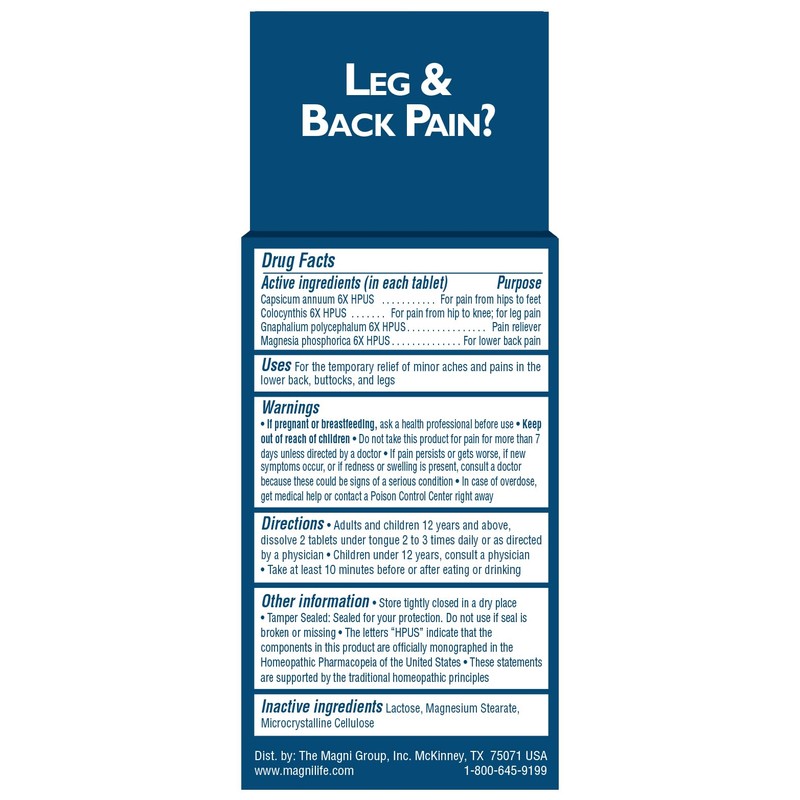 MagniLife Leg & Back Pain Relief, Fast-Acting Pain Relief, Naturally Soothe Burning, Tingling and Stabbing Pains, Symptomatic or Preventative, 125 Quick-Dissolve Tablets