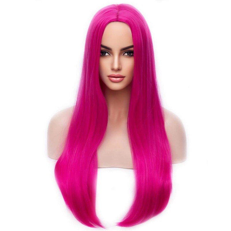 MAGQOO Hot Pink Wig for Women Long Hot Pink Wig Middle Part Hot Pink Straight Wig Heat Resistant Hight Density Synthetic Wigs (Hot Pink)