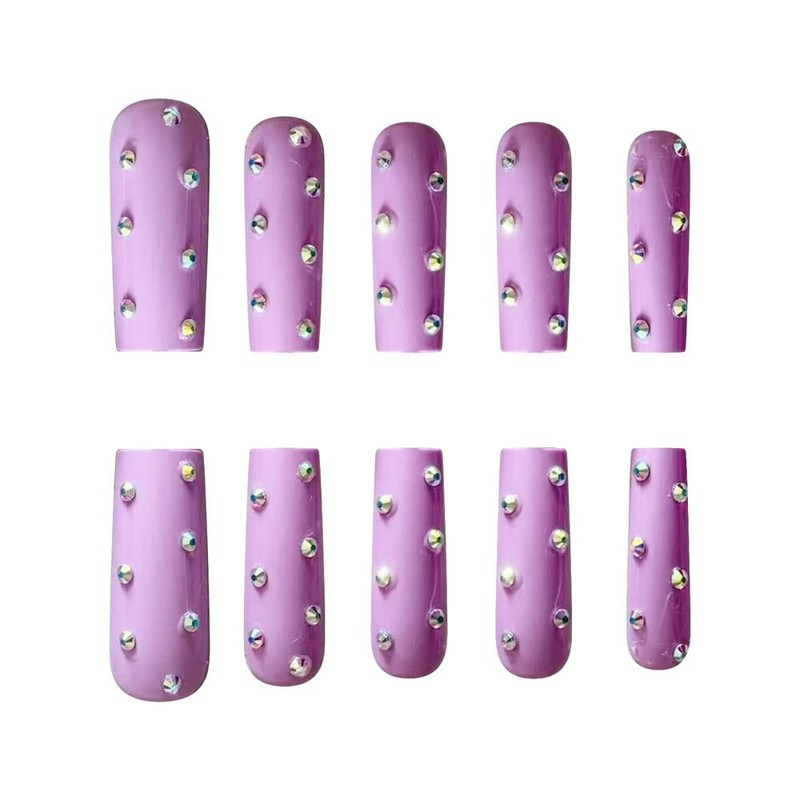 Magrace Press on Nails Long Square Fake Nails French False Nails with Designs Rhinestone 24 pcs Stick on Nails for Women