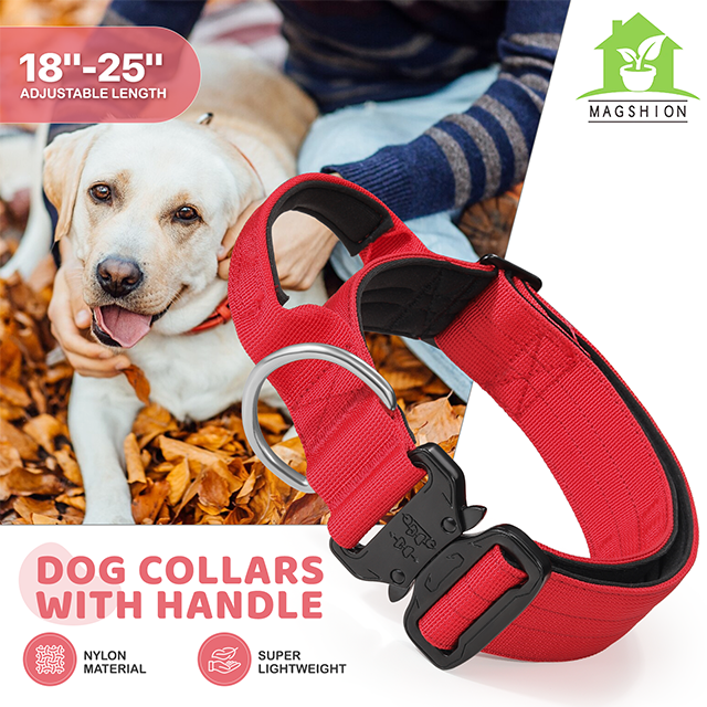 Magshion Red Reflective Nylon Dog Collar Soft Comfortable Adjustable Puppy Neck w/ Handle