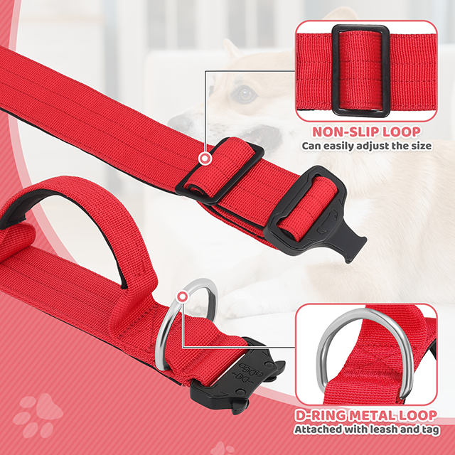 • Control and Convenience - Equipped with a strong nylon handle for superior control and a large D-ring for easy leash attachment, making it perfect for outdoor activities and training sessions.