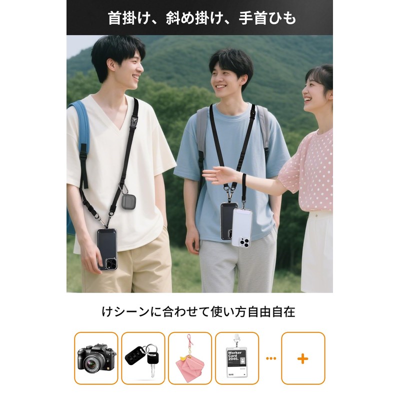 MagStan 2025 Improved Multi-functional, Smartphone Strap, Mobile Strap, Crossbody Strap, Shoulder Strap, YKK Buckle, Instantaneous Attachment and Removal, Width 0.6 inches (1.5 cm), Length Adjustable