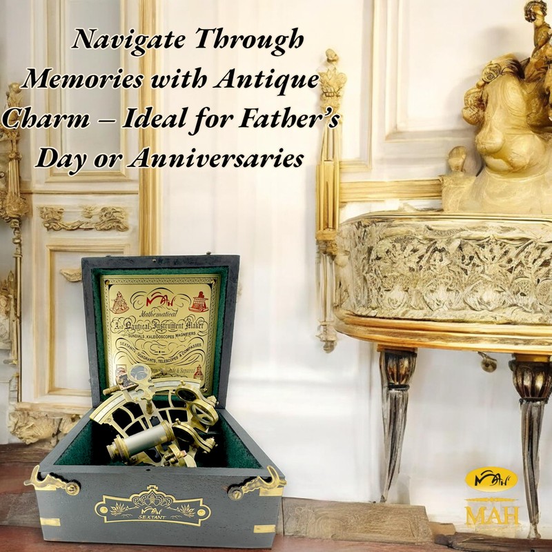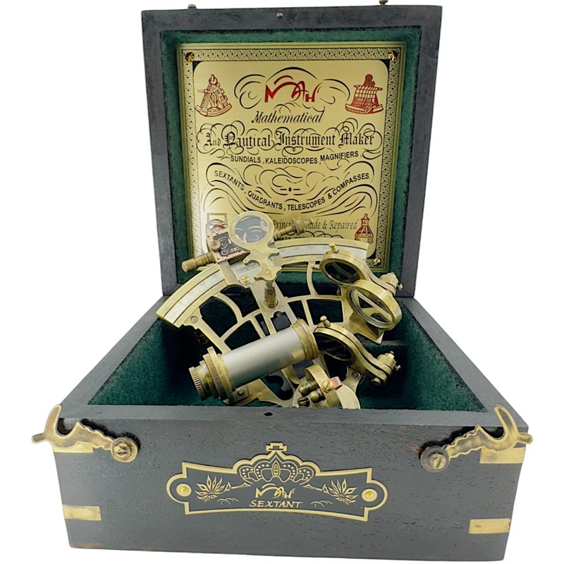 - This absolutely gorgeous solid brass sextant with a rich, Aged Brass finish. This Brass Sextant is made of Brass and the Box is made of seasoned Wood; Best Option on Quality Products. No compromise on quality. Great table top item for office, Christmas decorations, home and a unique gift for father, brother, boyfriend, husband, teacher and any navigational or nautical enthusiast.