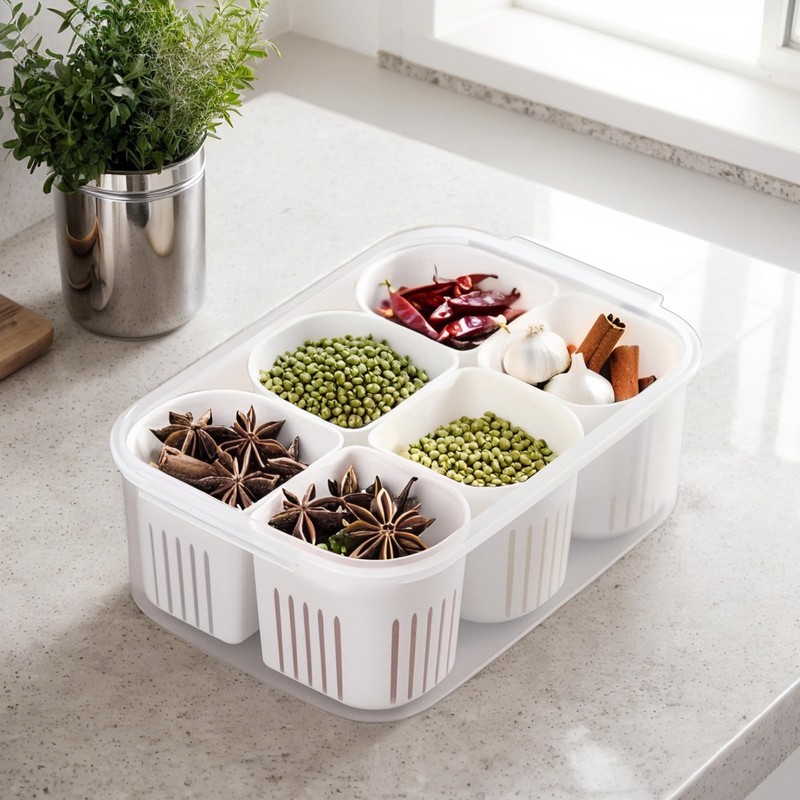 - SIX IN ONE STORAGE BOX Our fruit containers for refrigerator have 6 small compartments, which can store six kinds of food at the same time to meet your diverse storage needs.
