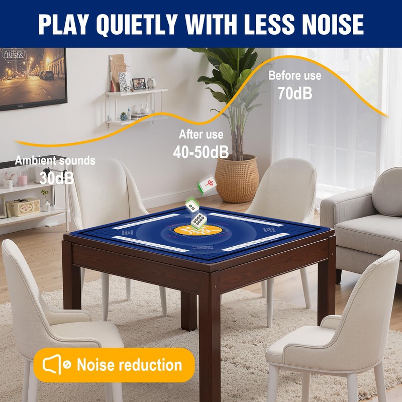 - Anti-slip and noise reduction design: Our Mahjong table mat uses high-quality fiber surface and 0.1-inch thick non-slip rubber foam backing, which can adhere firmly to any tabletop, ensuring stability throughout the game, and its dense structure can effectively reduce noise, creating a quieter gaming environment for players. This design prevents the mat and tiles from shifting, without constant adjustment, players can fully focus on strategy and enjoy an uninterrupted gaming experience.