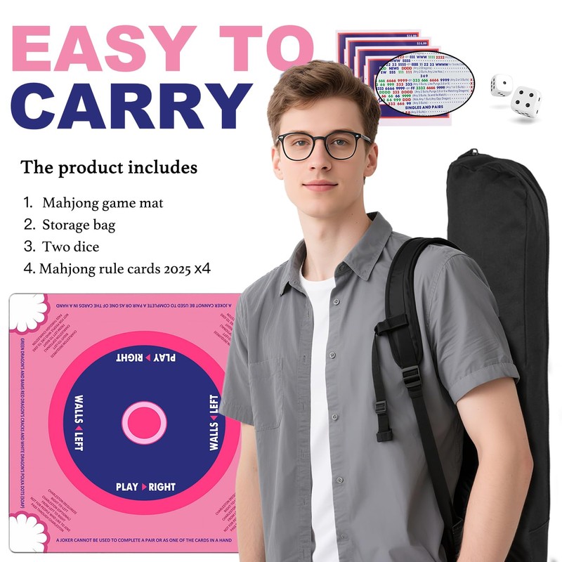 - Beginner-Friendly Rules Printed:Features American/Chinese mahjong rule cheatsheets on mat + 4 color reference cards. Great for learning!