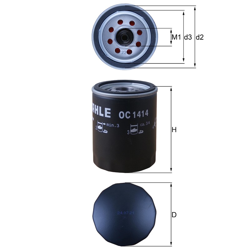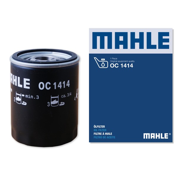 • MAHLE Spin-on Oil Filter OC 1414 // Dimensions (mm): Outer Diameter: 75, H: 102, Connecting Thread: M22x1.5; With Anti-return Valve // Premium Oil Filter in OE Quality