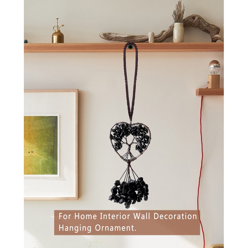 MAIBAOTA Black Obsidian Heart Shape Tree of Life Crystals Stone Decor Room Wall Decor Hippie Boho Meditation Hanging Ornament Gifts for Women