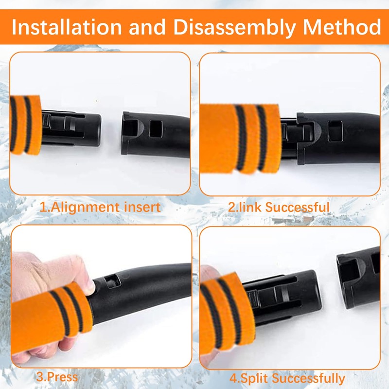 3. Press the joints buckle to separate the snow brush and ice scraper quickly and easily. Snow brushes and snow shovel can be used separately and are easy to store and space-saving.