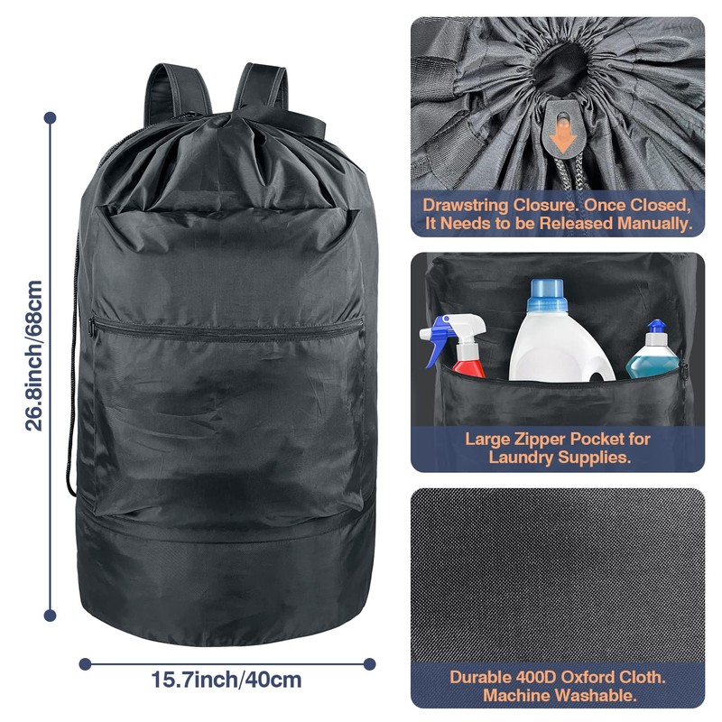 - [Premium Quality] This laundry bag backpack is made of tearing-resistant and durable 400D oxford cloth, machine washable, sturdy enough to bear 30lbs of laundry. Reinforced stitching on each joint ensures that the seams do not torn open easily, make sure longer lifespan.