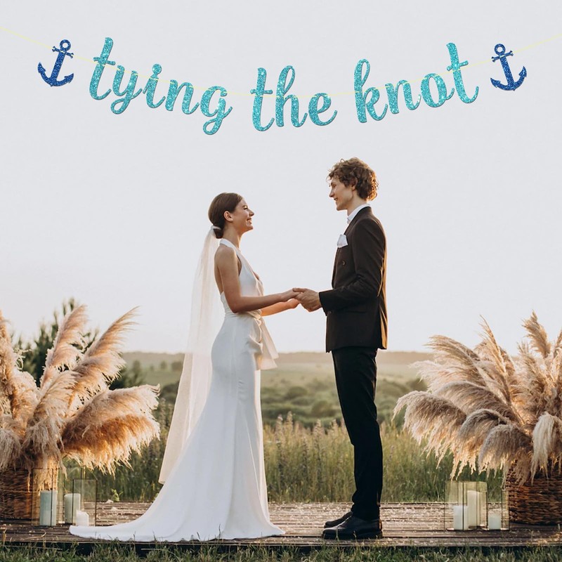 Maicaiffe Tying the Knot Banner - Nautical Wedding Party Decor - Engagement - Bride to Be - Ship's Anchor Sign Bachelorette Party Decorations, Blue Glitter