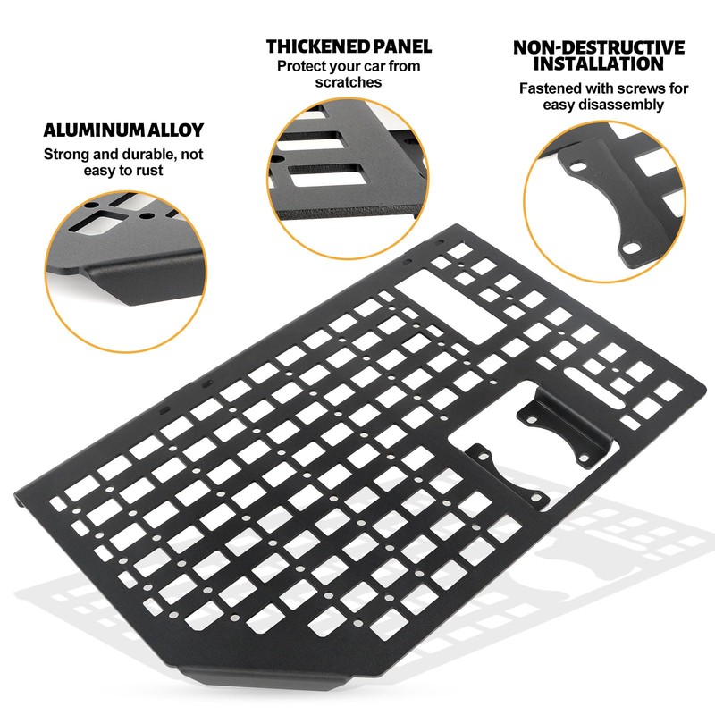 - 【NOT JUST A MOLLE PANEL】MOLLE Panel not only organizes your items, but also makes it easier to keep your vehicle tidy. Helps you find what you need in time, prevents items from slipping and keeps items in place.