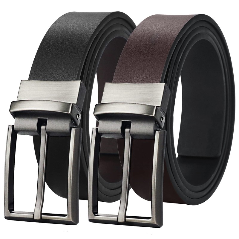 - Reversible Belt: Paying one belt but getting two colors to use! Stiff smooth leather with one side black and the other dark brown. Buckle can be rotated 360 degrees so two sides are available at your pleasure