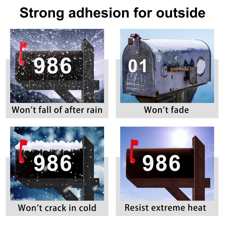 - 【Durable adhesion outside use】:Resists cracking in cold weather, rain and extreme heat! Made with engineer-grade vinyl, these reflective mailbox numbers are stronger than the packing tape. We have also adapted high quality Clear PET Backing which can protect well against the adhesive rather than the usual paper backing to ensure numbers firmly stick on your mailbox once placing.