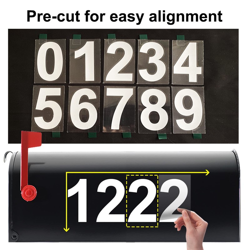 - 【Apply on any smooth & dry surface】: These house numbers for mailbox can be applied to any smooth, clean, and dry surface. Surfaces such as metal, plastics, walls, ceramics, glass, etc. It can be applied as a sign for mailbox, house address, trash, storage cabinet, business window, outdoor billboard phone number, car body decoration number, or anything else you can imagine.