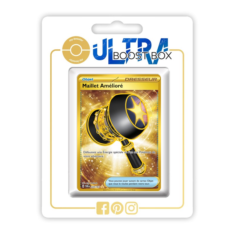 Maillet Amélioré (Special Hammer) 224/167 Secret Gold Trainer - Ultraboost X Écarlate et Violet 6 - Mascarade Crépusculaire Box with 10 French Pokémon Cards
