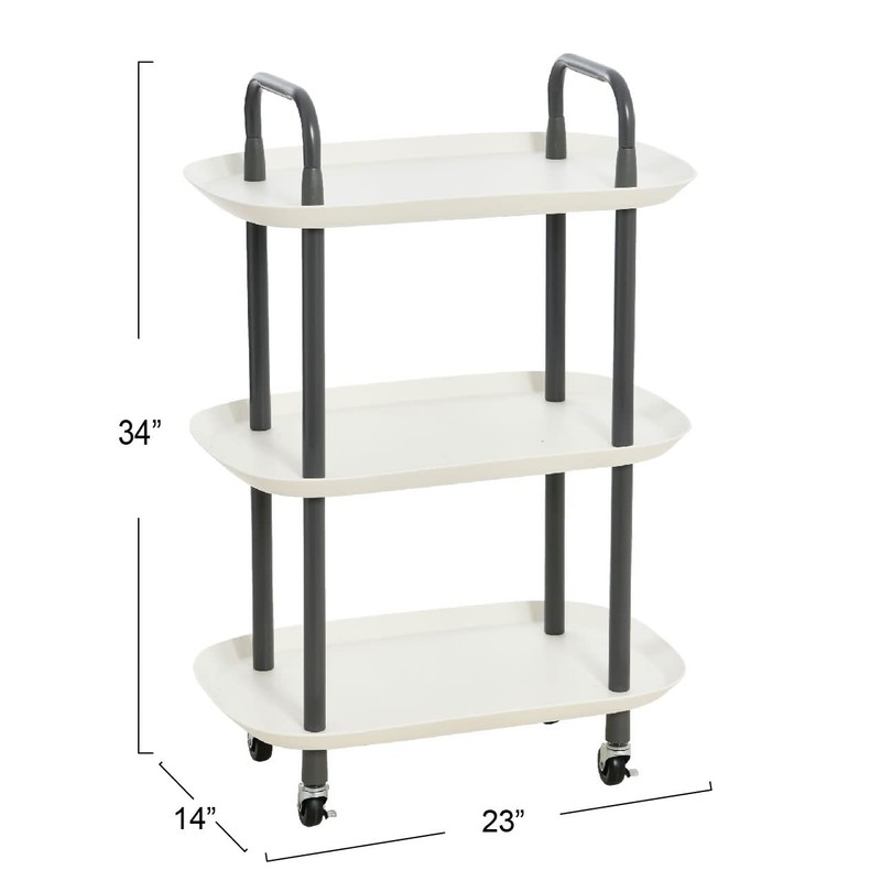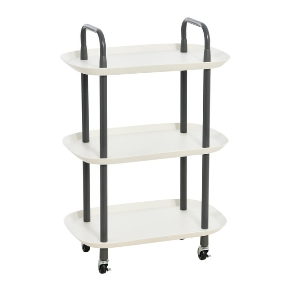 Main + Mesa Modern Plastic and Metal 3-Tier Trolley, White and Dark Grey
