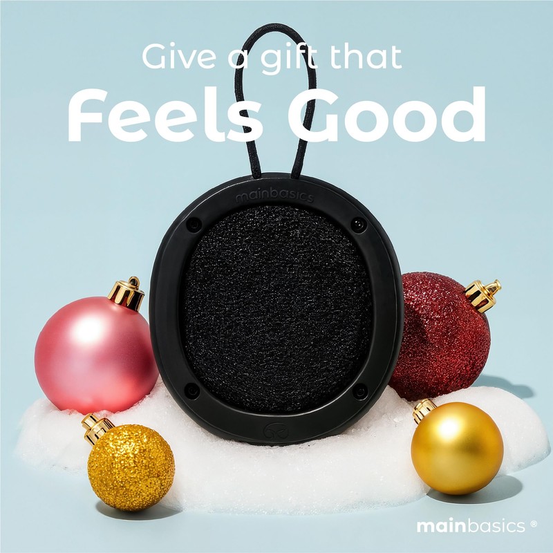 MainBasics Shower Tool Duo 2-1 Shower Loofah Sponge and Exfoliating Body Scrubber (2 Pack, Black)