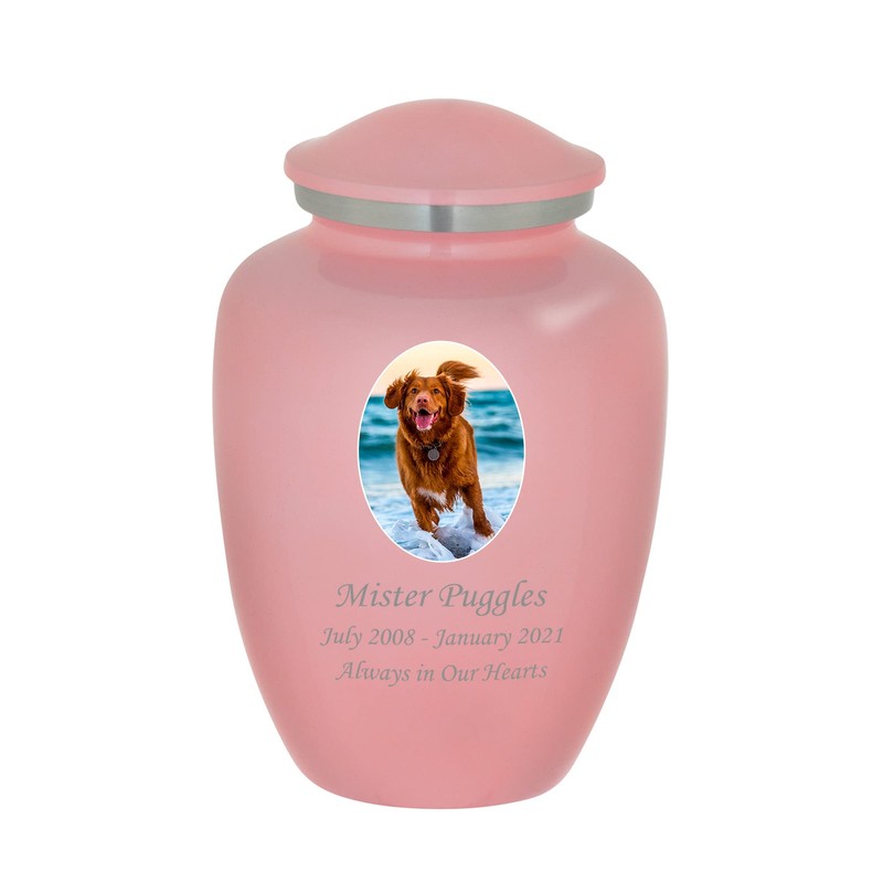 Mainely Urns Homage Medium Custom Photo Pet Cremation Urn for Pet Ashes - Vase Style Pet Urn - 80 Cubic Inch Capacity - Personalization Included (Pink)