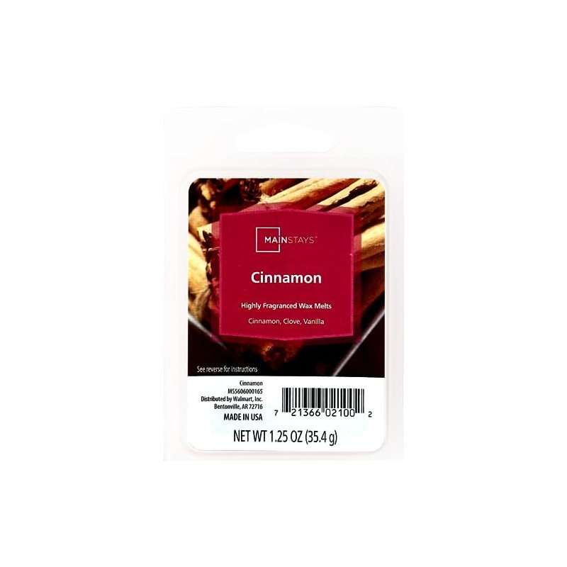 Mainstays 6-Cube 1.25oz Clam Shell Wax Melts are highly fragranced and will fill your home with pleasing scent when warmed. . These melts are ideal for use with any Electric Wax Warmer. Simply break off one or two pieces of the melts and place in your favorite warmer. Wax melts allow you to fragrance your home without a flame and are easy to clean. This 4-pack contains 4 x 1.25oz Clam Shell Packs.