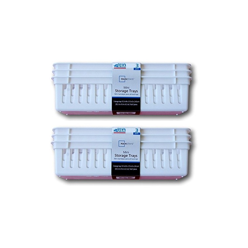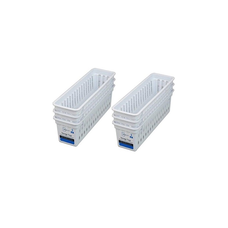 Mainstays Slim Plastic Storage Trays Baskets in White- Set of 6