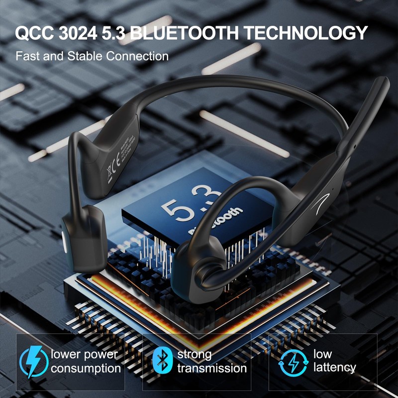 - MULTI-POINT PAIRING & USB DONGLE The bone conduction headphones, powered by Qualcomm (QCC) 5.3 Bluetooth technology, deliver strong signal transmission, reduced power consumption, and supports simultaneous connection with two Bluetooth devices. With the included USB Bluetooth adapter, effortlessly pair the wireless bone conduction headset with PCs lacking Bluetooth functionality, plug and play with computer.