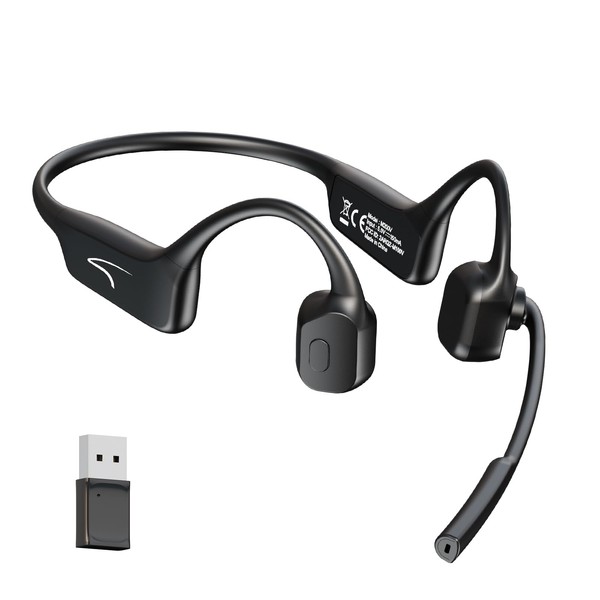 MAIRDI Open Ear Bone Conduction Headphones Bluetooth with Microphone Noise Canceling, Wireless Bluetooth Headset with Mic Boom & USB Dongle for Work Calls and Meetings Sport Running