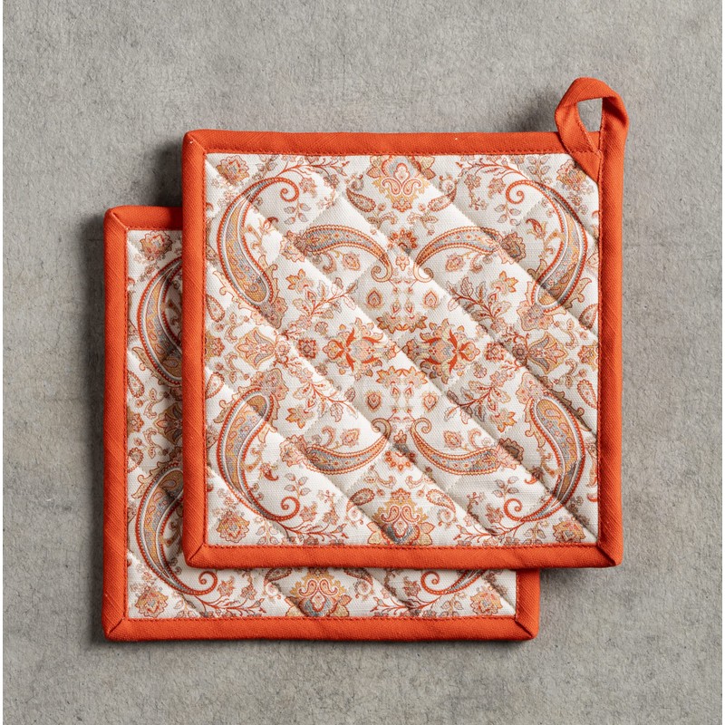 Maison d' Hermine Hot Pads 100% Cotton Set of 2 Pot Holders with Loop Heat Resistant Potholders, Grilling, Barbeque, Handling Hot Pans, Cachemire - Thanksgiving/Christmas (8"x8")