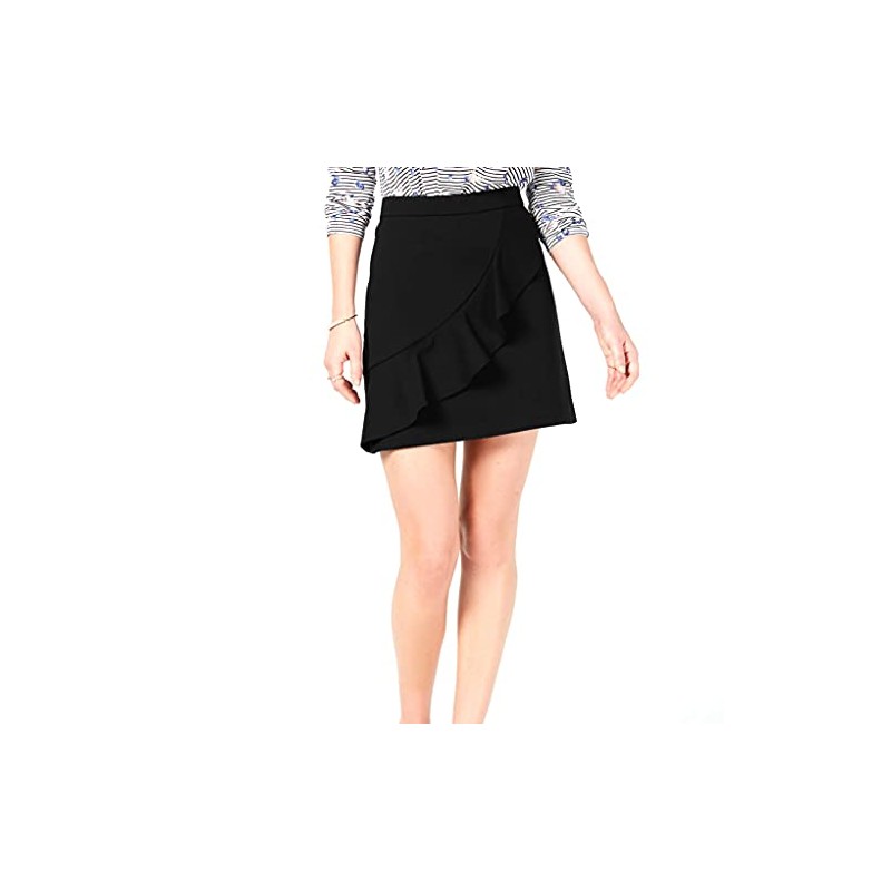 Maison Jules Women's Ruffled Mini Skirt (Deep Black, Large)