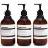 MaisoNovo Refillable Shampoo and Conditioner Bottles | 16.9 fl oz Set of 3 Amber Plastic Bottles Black Pumps