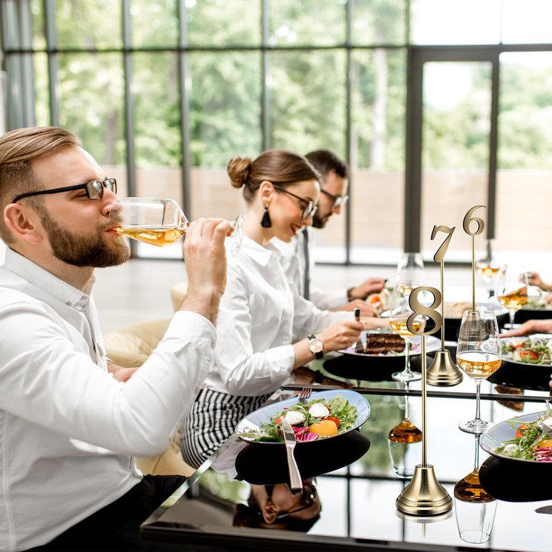- Durable Metal Table Numbers: crafted from thickened metal table numbers, each piece features a fine baked paint finish for a luxurious sheen; With an 8-inch tall table number design and a sturdy 85g base, these numbers for table offer clear visibility and space-saving efficiency