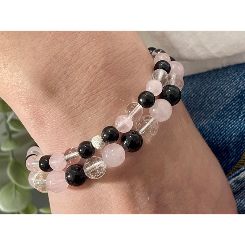Majas Perlen Armband Achtsamkeit Bergkristall Turmalin Rosenquarz echt 6mm mit 925er Sterling Silber 5mm facettiert - Größe 16 bis 18cm - Handmade Perlenarmband - Spiritueller Schmuck Unisex