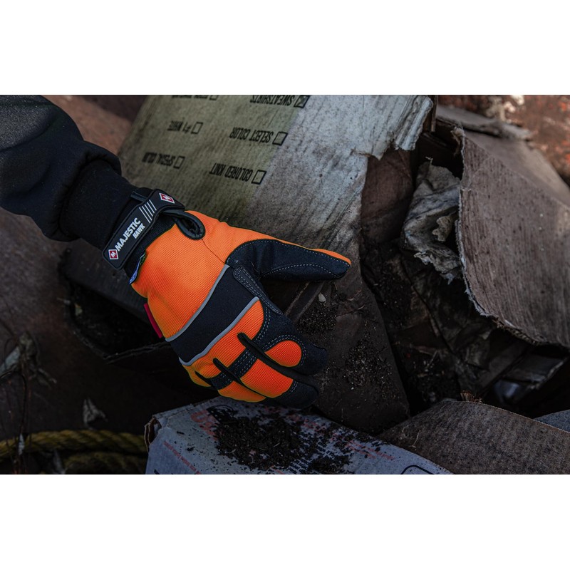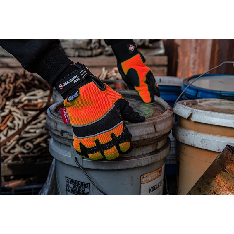 • HIGH VISIBILITY: These mechanic gloves are denoted by their bright orange color, allowing for a high visibility even in dark and stormy weather. They also are designed with silver reflective lining right below the knuckles. Stay visible, stay safe! Stay Majestic.