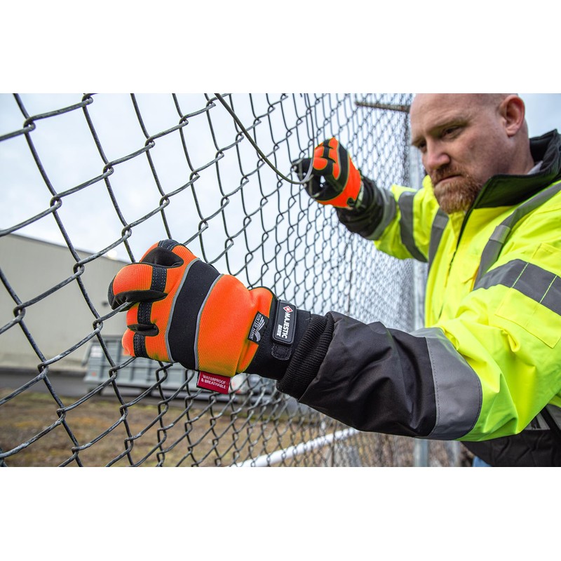 Majestic 2145HOH/7 Winter Lined Mechanics Glove, Armor Skin Synthetic Leather Palm, with High Visibility Knit Back and Reinforced Padding, Waterproof, Neoprene Knuckle, Size 7, Orange