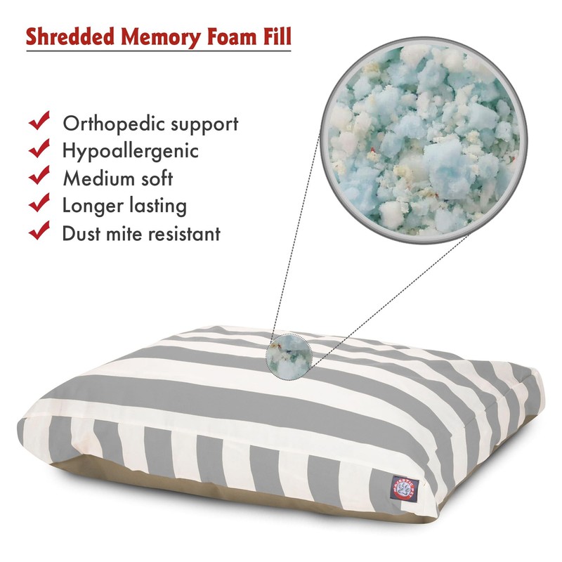 Majestic Pet Memory Foam Rectangle Large Dog Bed Washable – Non Slip Comfy Pet Bed – Dog Crate Bed with Removable Washable Cover – Dog Kennel Bed for Sleeping - (44x36) L - Vertical Stripe - Gray