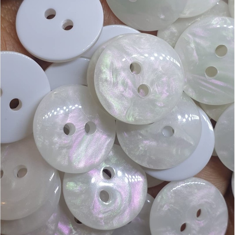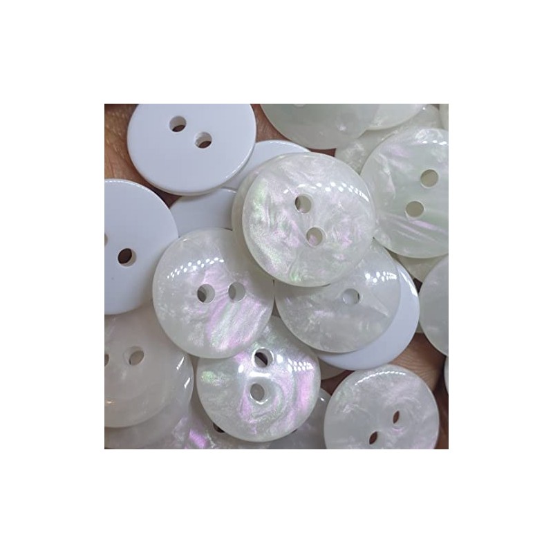 MajorCrafts® 40pcs 18mm Cream White Pearlescent Galaxy Effect 2 holes Small Round Resin Sewing Buttons Needlework Craft Embellishments