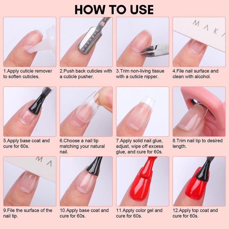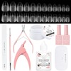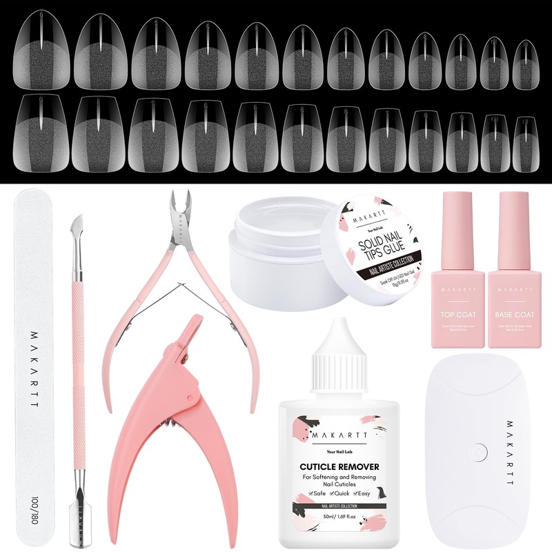 Makartt Solid Nail Tip Glue Kit - 15ml Soild Nail Glue for Press on Nails, Mini UV Nail Light with gel base and top coat, Cuticle Pusher Remover and Nail File Kit, Coffin Nail Tips Manicure Tools Set