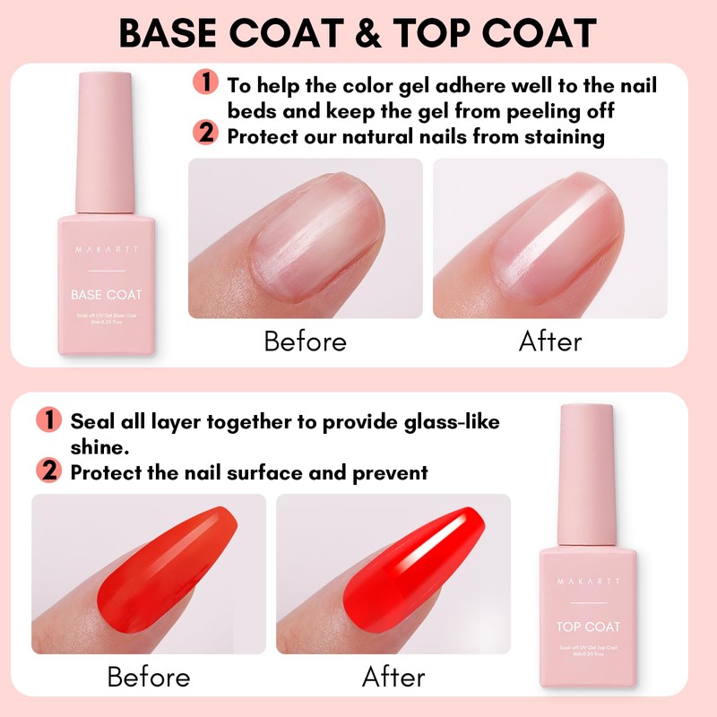- Beginner-Friendly & Easy to Apply: With a uv lamp for gel nails, gel top and base coat, this nail kit is perfect for home or salon use. The LED lamp quickly cures all types of gel nail polish and is compatible with builder nail gel, poly nail gel, and more. Gel Base coat boosts adhesion, top coat nail polish prevents scratches and chips, keeping nails glossy for over 21 days